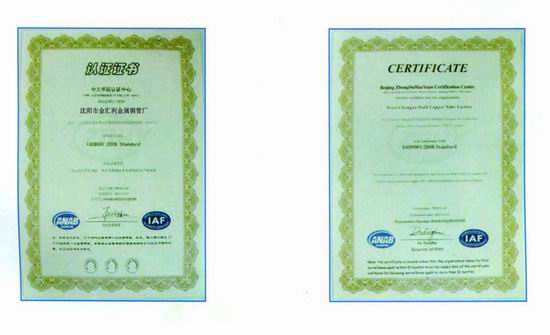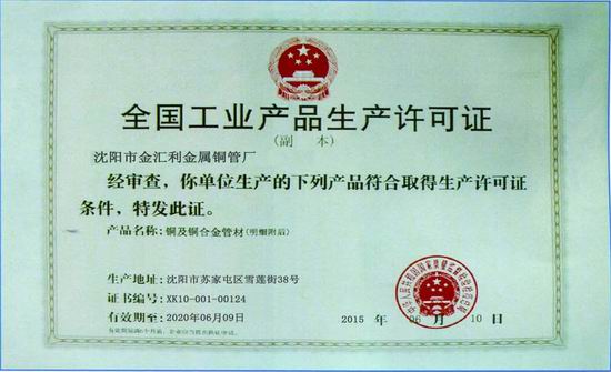 沈阳金汇利铜管厂位于辽宁省沈阳市苏家屯区金桔路10号(原沈阳有色金属加工有限公司厂址),始建于1949年,隶属于沈阳有色金属加工厂铜管分厂,由于原沈阳有色金属加工有限公司政策性破产后被中国铝业收购,我公司现已具有独立法人资格,原厂房设备以及有关技术人员及技术工人正常并入我企业,除生产现有产品外,仍具有销售原沈阳有色金属加工有限公司产品资质。